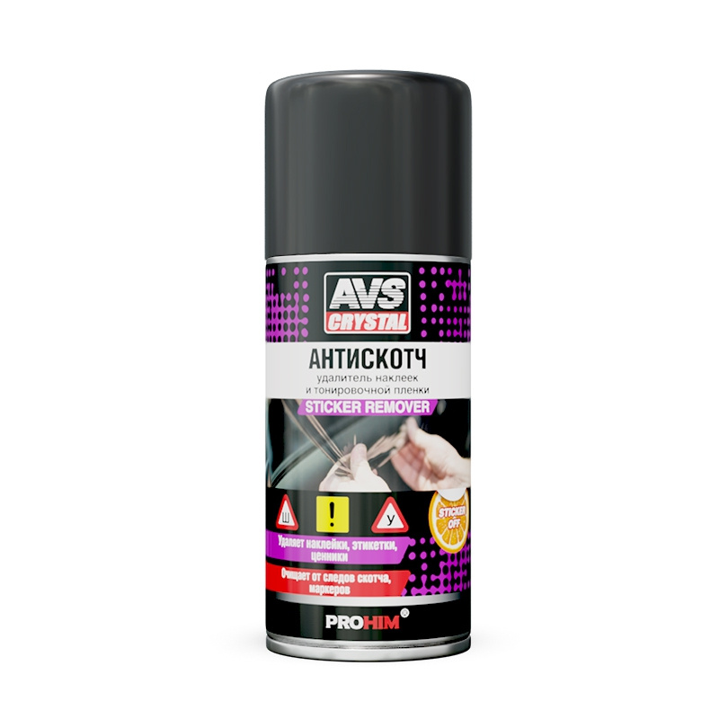 Для удаления тонировочной пленки: Во избежание попадания следов аэрозоля необходимо защитить поверхности, не подлежащие обработке. Не допускать длительный контакт с пластиковыми деталями автомобиля. Равномерно прогреть стекло, подлежащее растонированию. Аккуратно поддеть край пленки и медленно, без рывков, снять пленку со всей площади стекла. Дать стеклу остыть и равномерно распылить состав на стекло, дать подействовать в течение 30-40 секунд. Удалить средство с помощью резинового скребка или сухой салфетки. Для окончательной очистки стекла рекомендуется использовать очистители стекол «AVS CRYSTAL».