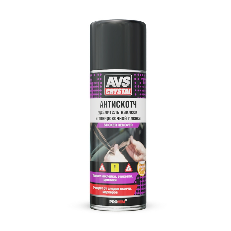 Для удаления тонировочной пленки: Во избежание попадания следов аэрозоля необходимо защитить поверхности, не подлежащие обработке. Не допускать длительный контакт с пластиковыми деталями автомобиля. Равномерно прогреть стекло, подлежащее растонированию. Аккуратно поддеть край пленки и медленно, без рывков, снять пленку со всей площади стекла. Дать стеклу остыть и равномерно распылить состав на стекло, дать подействовать в течение 30-40 секунд. Удалить средство с помощью резинового скребка или сухой салфетки. Для окончательной очистки стекла рекомендуется использовать очистители стекол «AVS CRYSTAL».